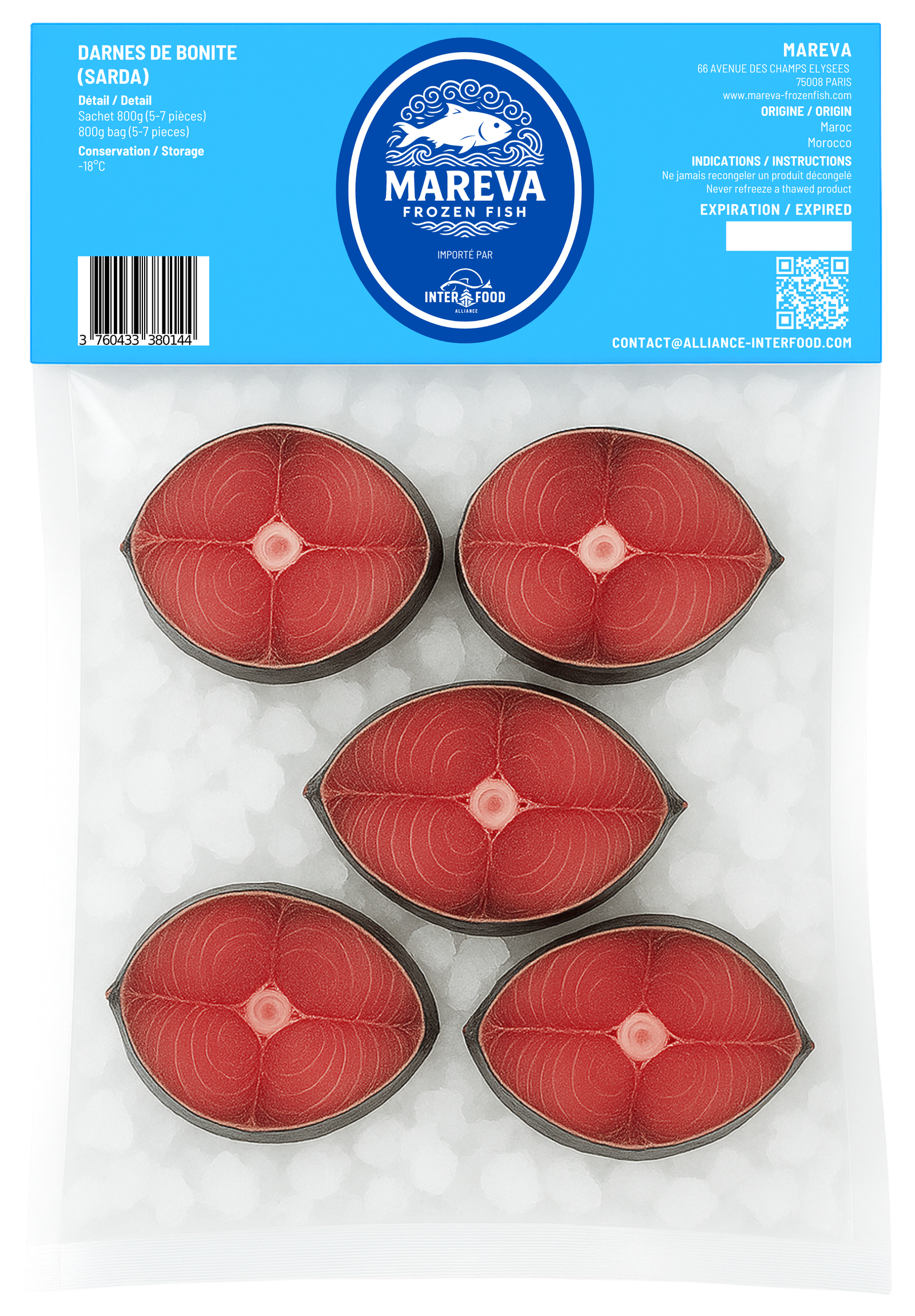 Présentation : Darnes congelées en IQF – Sous vide ou en sachet – 800g (4–5 pièces)